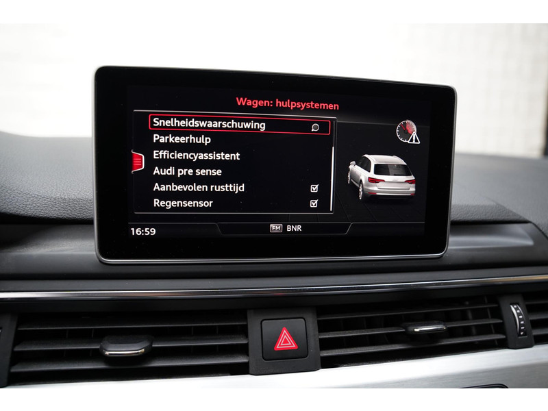 Zoals u mag verwachten van deze Audi A4 Avant is hij uitgerust met een reeks aan actieve veiligheidssystemen. Onderweg fungeert de verkeersbord-detectie als het ware als uw bijrijder en attendeert u op de verkeersborden langs de weg. Met het Lane-keeping systeem komt u nooit per ongeluk buiten de rijstrook. Een aanrijding met een andere weggebruiker die zich in uw dode hoek bevindt, heeft meestal ernstige gevolgen, zeker bij kwetsbare verkeersdeelnemers. De actieve dodehoekdetectie helpt dit risico sterk te verkleinen. Ook helpen het accident avoidance system, hill hold functie, brake assist, vermoeidheidsherkenning en bandenspanningcontrolesysteem, uw rit tot een veilige rit te maken.