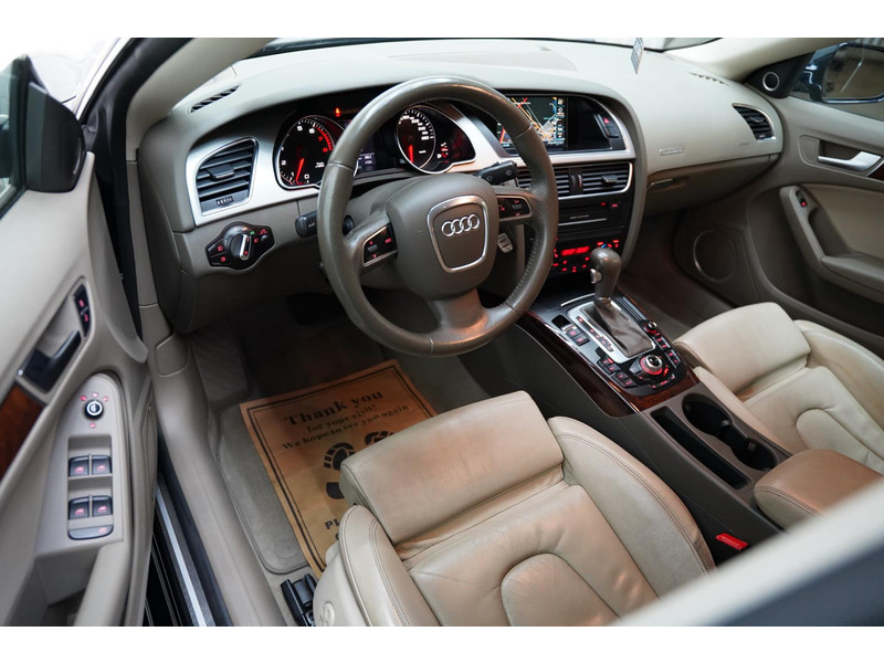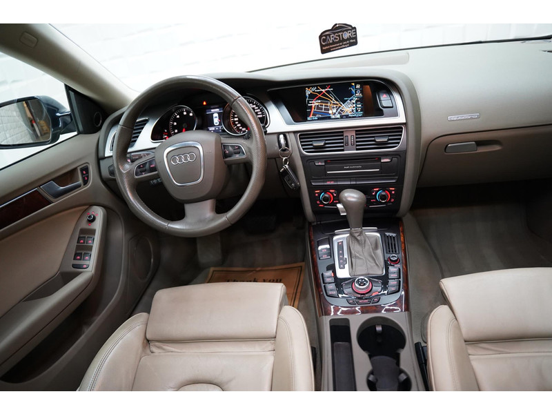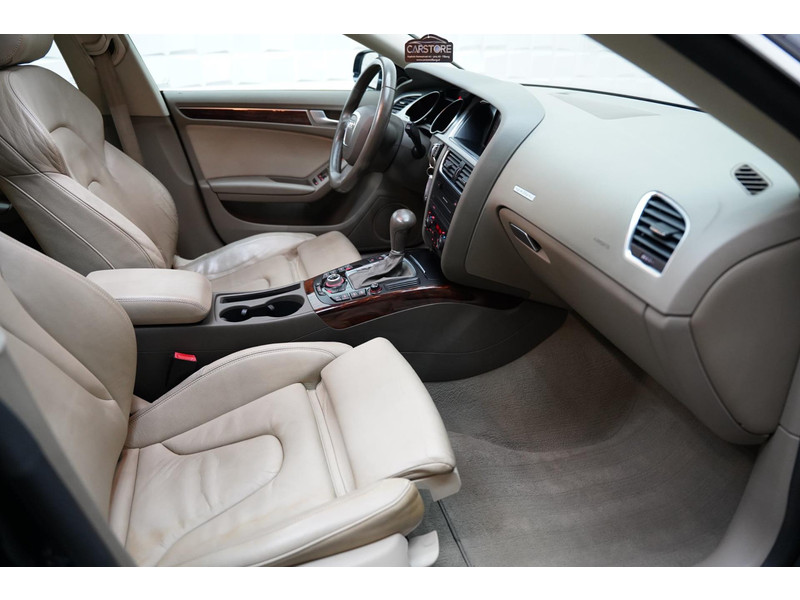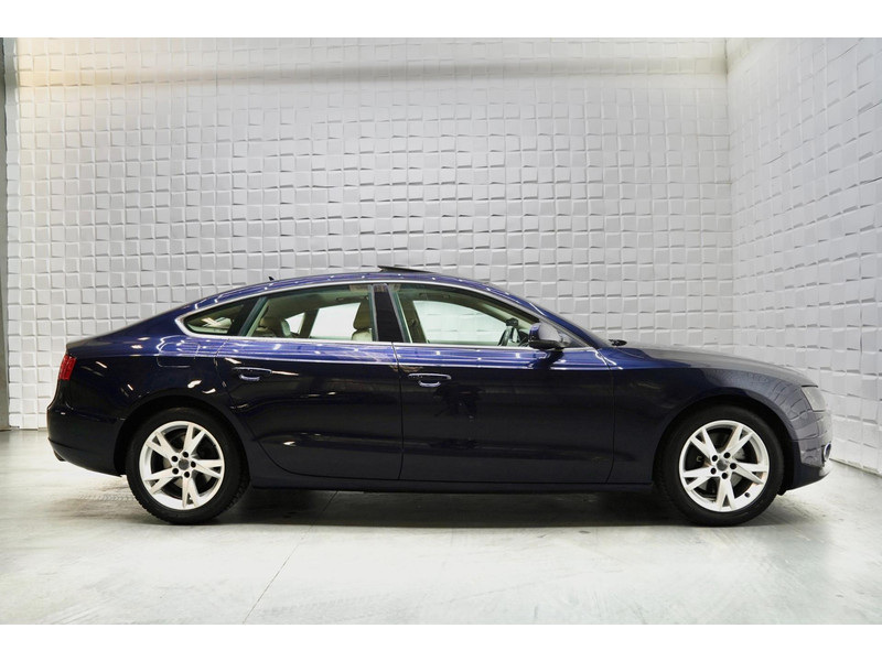 Bij het ontwerpen van de Audi A5 Sportback stonden uw comfort en uw veiligheid centraal. Dankzij de zescilinder motor en de automatische transmissie, is het autorijden snel en comfortabel. Solide op nat asfalt en regenklinkers, maar net zo onverschrokken op de onverharde weg: de vierwielaandrijving trekt je overal doorheen. Misschien bent u niet veeleisend, maar na dit elektrisch bediende glazen panorama dak en het lederen interieur wilt u nooit anders meer. Comfort en een gevoel van luxe: dat geeft de heerlijke stoelverwarming. Dankzij de xenonverlichting profiteert u in het donker van een krachtige en heldere lichtbundel. Bij de zeer complete uitrusting van deze auto behoren ook 18 inch lichtmetalen velgen, in delen neerklapbare achterbank, verstelbare lendensteunen, verwarmde ruitensproeiers en snelheidsafhankelijke stuurbekrachtiging.