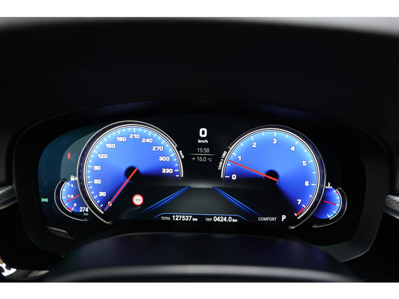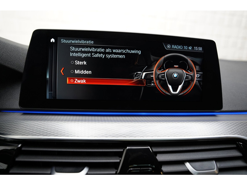 De nieuwste veiligheidssystemen komen in deze BMW 5-serie Touring samen. Belangrijk voor uw veiligheid en die van uw passagiers is de verkeersbord-detectie in deze auto. Het Lane-keeping systeem zorgt voor een automatisch constante positie binnen de rijstrook. Afdwalen is uitgesloten. Bij afslaan en inhalen waarschuwt de actieve dodehoekdetectie meteen als er gevaar is vanwege voertuigen buiten uw zichtveld. De auto is ook uitgerust met head-up display, accident avoidance system, forward collision warning system, hill hold functie, brake assist en vermoeidheidsherkenning.