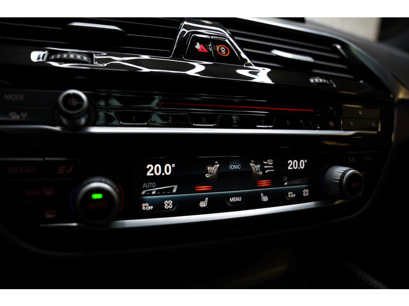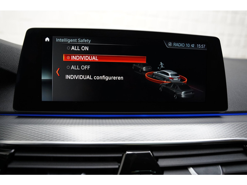 De nieuwste veiligheidssystemen komen in deze BMW 5-serie Touring samen. Belangrijk voor uw veiligheid en die van uw passagiers is de verkeersbord-detectie in deze auto. Het Lane-keeping systeem zorgt voor een automatisch constante positie binnen de rijstrook. Afdwalen is uitgesloten. Bij afslaan en inhalen waarschuwt de actieve dodehoekdetectie meteen als er gevaar is vanwege voertuigen buiten uw zichtveld. De auto is ook uitgerust met head-up display, accident avoidance system, forward collision warning system, hill hold functie, brake assist en vermoeidheidsherkenning.