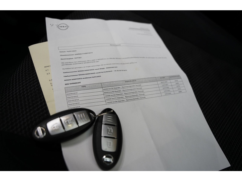 De 360 graden camera op deze auto wordt verzorgd door vier geavanceerde camera's. Het biedt garantie van uitstekende beeldkwaliteit. Zorgeloos en geconcentreerd rijden? Het origineel navigatiesysteem wijst de weg! De automatische airconditioning zorgt voor een prettige binnentemperatuur. Het audiosysteem bedient u blind met behulp van de audiobesturing op het stuur. Veilig en praktisch! De DAB-ontvanger zorgt voor een ruime keuze uit digitale radiozenders en een kristalheldere geluidsweergave. Deze Nissan is voorzien van regensensor, cruise control, keyless entry, buitentemperatuurmeter, automatisch dimmende buitenspiegels en lederen stuur.