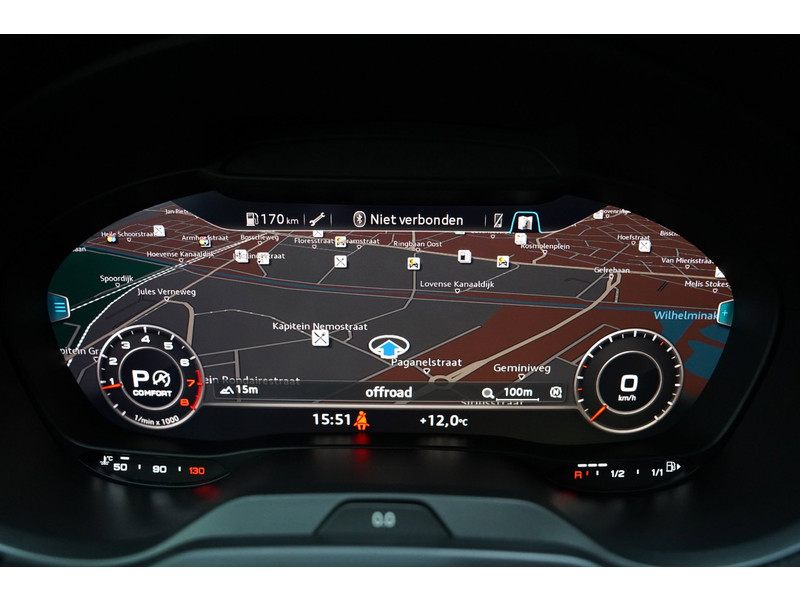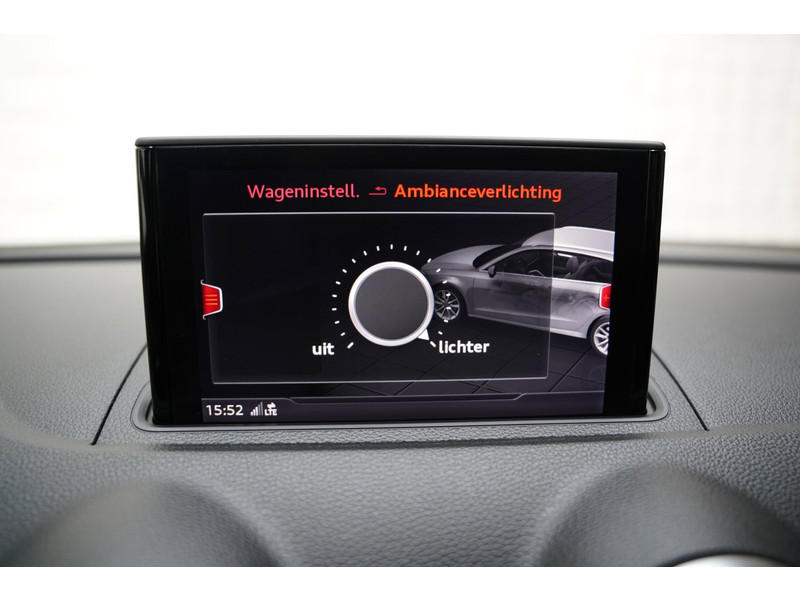 Het digitale dashboard in deze auto maakt personalisatie van uw cockpitinterface mogelijk. Gemakkelijk en veilig is de spraakbediening voor het audio-installatiesysteem en het navigatiesysteem met harde schijf. Daarbij kunt u deze ook bedienen met de knoppen op het stuur. De audio-kwaliteit is geweldig, dankzij de DAB-ontvangst. De achteropkomend verkeer waarschuwing geeft een signaal als degene achter u te dicht op u zit. Ook handig en veilig bij het wisselen van rijbaan. Het spreekt voor zich dat een auto als deze ook van automatische airconditioning is voorzien. U kunt bij het inparkeren natuurlijk niet aan alle kanten ogen hebben. Daarom is deze Audi A3 Sportback voorzien van parkeersensoren! Extra opties op deze auto zijn: regensensor, cruise control, sportstuurwiel, buitentemperatuurmeter, automatisch dimmende buitenspiegels en isofix-aansluiting.