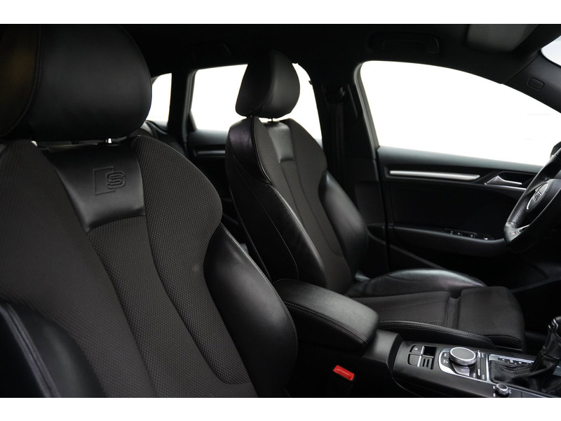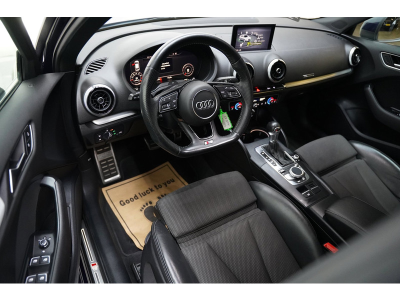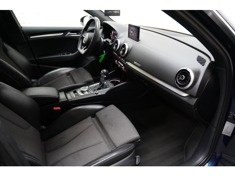 Neem plaats in de cockpit, start de motor en voel het vermogen. Met deze sportieve Audi A3 Sportback hebt u altijd de controle. Een hoogtepunt uit de specificatielijst van deze auto is de sportieve S-Line styling. De aandrijving van deze Audi wordt verzorgd door een viercilinder motor en een automatische transmissie. Op koude en donkere dagen zijn de verwarmbare voorstoelen een uitkomst. Stevig ondersteund door de sportstoelen blijft u bij elke beweging op uw plek. Met matrix LED-verlichting rijdt u eigenlijk altijd met groot licht, dus maximaal zicht. Toch is verblinden er niet bij, want het systeem regelt de verlichting zo dat tegenliggers er geen last van hebben. Tot de voorzieningen van deze auto behoren 18 inch lichtmetalen velgen, sportonderstel, halflederen bekleding, warmtewerend glas, in delen neerklapbare achterbank en verstelbare lendensteunen.