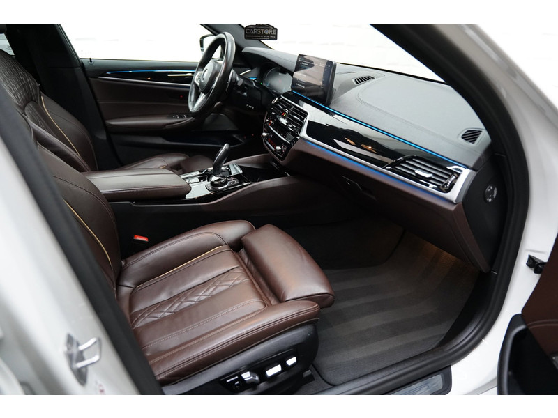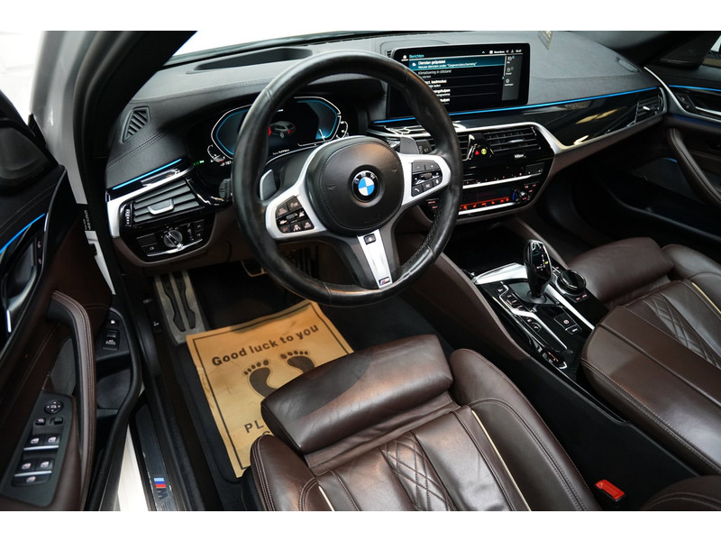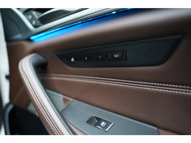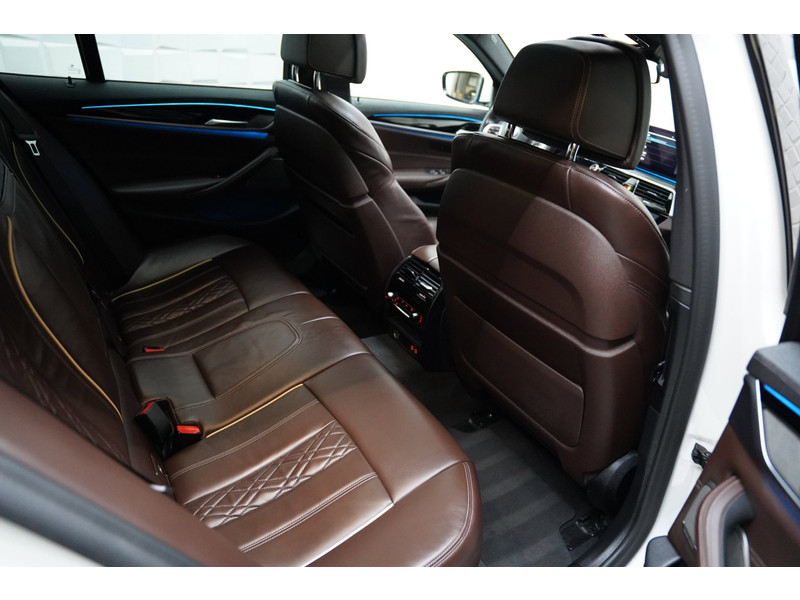 Het digitale dashboard zorgt voor een super functionele display van reisinformatie. Zelfs een kleine aanrijding kan flinke kosten veroorzaken. Gelukkig laat de achteruitrijcamera precies zien wat er zich achter de auto bevindt en geeft een waarschuwingssignaal. Als u de adaptive cruise control inschakelt, regelt de auto zelf de snelheid en de afstand tot de auto voor u. De elektrisch inklapbare trekhaak blijft mooi uit het zicht als u hem niet gebruikt. Deze BMW 5-serie is voorzien van remote services. Via uw smartphone bedient u diverse functies ook op afstand en krijgt u informatie over de status van uw auto. Natuurlijk behoren dashboard met spraakbediening, premium audiosysteem, navigatiesysteem met harde schijf, achteropkomend verkeer waarschuwing, automatische airconditioning en schakel flippers aan het stuur ook tot de uitrusting van deze complete auto.