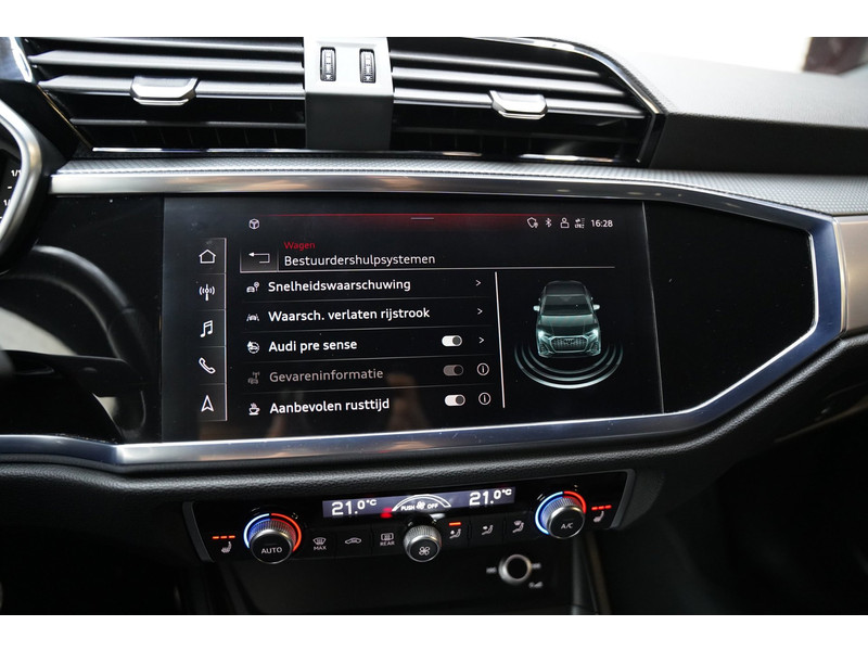 De nieuwste veiligheidssystemen komen in deze Audi Q3 Sportback samen. Een belangrijke bijdrage aan de veiligheid onderweg levert de verkeersbord-detectie. Het Lane-keeping systeem let constant op en waarschuwt of corrigeert als u onoplettend over de lijnen van de rijstrook gaat. Mindert een voorligger onverwachts te veel vaart, dan komt de forward collision warning in actie en waarschuwt meteen. Dankzij veiligheidsvoorzieningen als accident avoidance system, hill hold functie, brake assist, vermoeidheidsherkenning en bandenspanningcontrolesysteem, bent u steeds veilig onderweg.