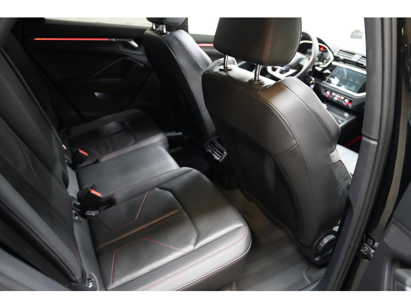 Neem plaats in de cockpit, start de motor en voel het vermogen. Met deze sportieve Audi Q3 Sportback hebt u altijd de controle. Met de kenmerkende S-Line styling toont deze Audi zich van zijn sportieve kant. De aandrijving van deze Audi wordt verzorgd door een viercilinder motor en een automatische transmissie. Daglicht valt vrij binnen door het elektrisch bediende glazen panorama dak. Wat ook met één klik opent, is de elektrisch bedienbare achterklep. Verwarmde stoelen maken het interieur behaaglijk op winterse dagen. De koplampen zijn voorzien van matrix LED-verlichting waarmee u aanzienlijk verder kan kijken in het donker. Het systeem past zelf de lichtstraal aan op het moment tegenliggers verblind kunnen worden. U wordt in deze auto ook getrakteerd op 18 inch lichtmetalen velgen, sportonderstel, halflederen bekleding, warmtewerend glas, in delen neerklapbare achterbank en LED-achterlichten.