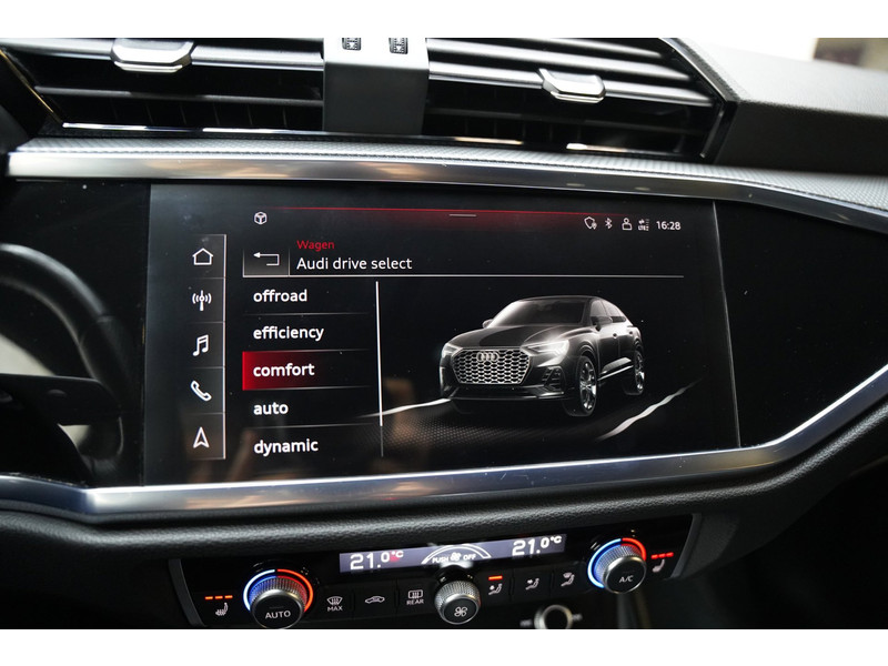 De nieuwste veiligheidssystemen komen in deze Audi Q3 Sportback samen. Een belangrijke bijdrage aan de veiligheid onderweg levert de verkeersbord-detectie. Het Lane-keeping systeem let constant op en waarschuwt of corrigeert als u onoplettend over de lijnen van de rijstrook gaat. Mindert een voorligger onverwachts te veel vaart, dan komt de forward collision warning in actie en waarschuwt meteen. Dankzij veiligheidsvoorzieningen als accident avoidance system, hill hold functie, brake assist, vermoeidheidsherkenning en bandenspanningcontrolesysteem, bent u steeds veilig onderweg.