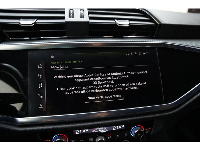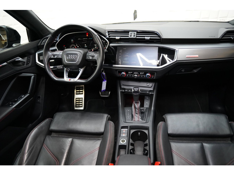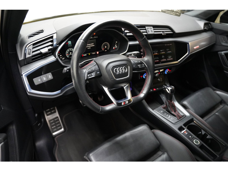 Neem plaats in de cockpit, start de motor en voel het vermogen. Met deze sportieve Audi Q3 Sportback hebt u altijd de controle. Met de kenmerkende S-Line styling toont deze Audi zich van zijn sportieve kant. De aandrijving van deze Audi wordt verzorgd door een viercilinder motor en een automatische transmissie. Daglicht valt vrij binnen door het elektrisch bediende glazen panorama dak. Wat ook met één klik opent, is de elektrisch bedienbare achterklep. Verwarmde stoelen maken het interieur behaaglijk op winterse dagen. De koplampen zijn voorzien van matrix LED-verlichting waarmee u aanzienlijk verder kan kijken in het donker. Het systeem past zelf de lichtstraal aan op het moment tegenliggers verblind kunnen worden. U wordt in deze auto ook getrakteerd op 18 inch lichtmetalen velgen, sportonderstel, halflederen bekleding, warmtewerend glas, in delen neerklapbare achterbank en LED-achterlichten.