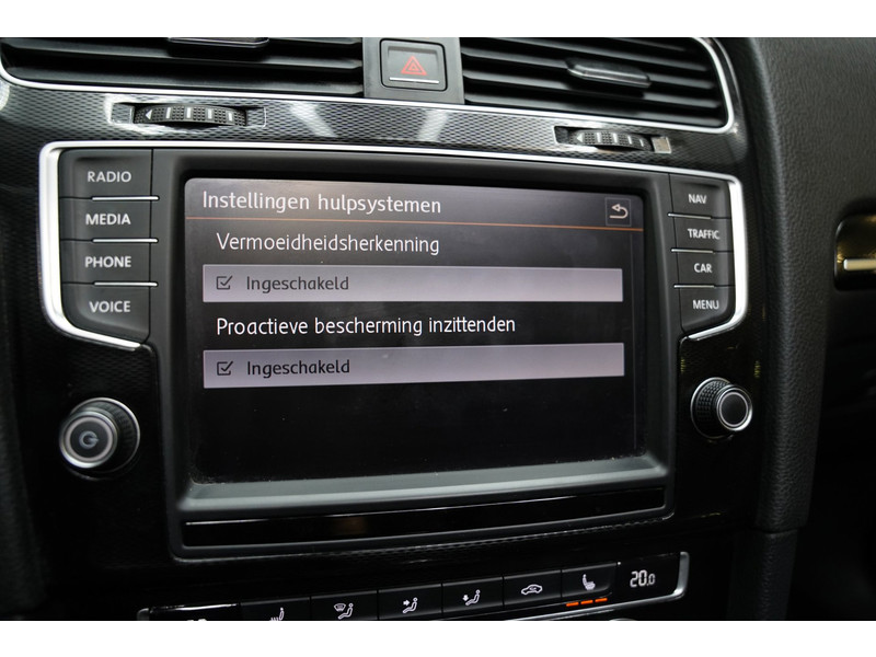 Zoals u mag verwachten van deze Volkswagen Golf is hij uitgerust met een reeks aan actieve veiligheidssystemen. Vermoeidsheidsherkenning herkent tekenen van vermoeidheid bij de bestuurder. Het systeem voorkomt dat er ongelukken gebeuren doordat de bestuurder in slaap valt. Bij een noodstop gebeurt er heel veel tegelijk: gas los, rempedaal in, kijken, sturen. Dan is het een veilig gevoel dat de Brake Assist uw remactie tot het maximum oppept.