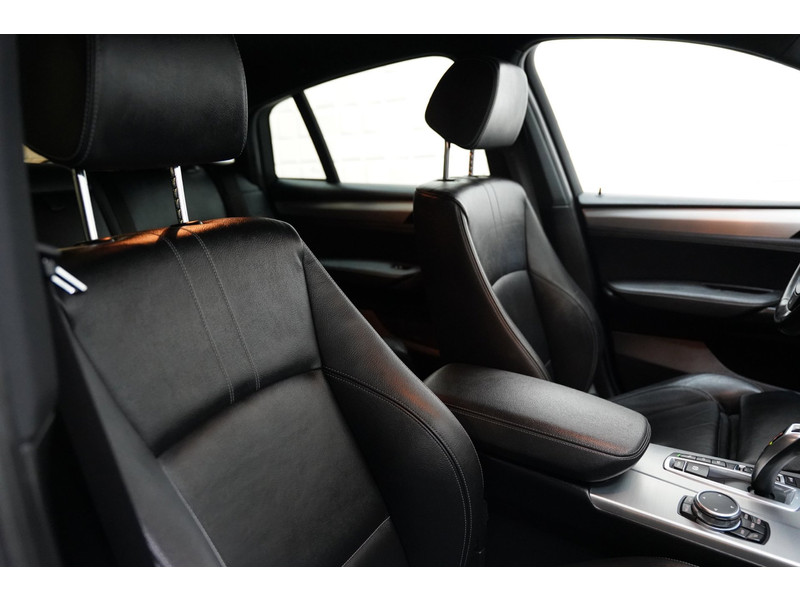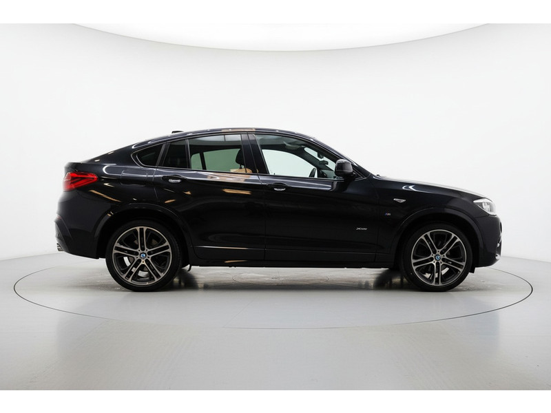 De achteruitrijcamera brengt precies in zicht wat zich achter u bevindt en toont een glashelder beeld op hoge resolutie. Een geluidssignaal waarschuwt hoeveel ruimte u nog heeft. Naast handmatige bediening kunt u belangrijke functies met uw stem bedienen dankzij de ingebouwde spraakbediening. Er is geen bestemming die het aanwezige navigatiesysteem met harde schijf niet kent. Dat rijdt lekker! Omdat u nu eenmaal niet overal ogen heeft, is deze BMW X4 voorzien van een achteropkomend verkeer waarschuwing die registreert wanneer de afstand tot uw achterligger te krap is. Of het buiten nu warm is of koud, dankzij automatische airconditioning is het binnen altijd behaaglijk. De uitrusting van deze BMW is met schakel flippers aan het stuur, regensensor, cruise control, keyless Go, buitentemperatuurmeter en automatisch dimmende binnen- en buitenspiegels behoorlijk compleet.