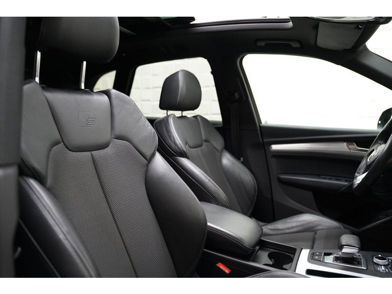 Gebouwd voor liefhebbers van autorijden, deze Audi Q5 levert sportieve prestaties en onafgebroken rijplezier. Met de S-Line styling mag deze auto zeker gezien worden. De uitstekende prestaties van deze auto komen van de viercilinder motor en de automatische transmissie. Deze auto staat extra stevig op de wielen onder alle omstandigheden dankzij de vierwielaandrijving. Van binnen lijkt het allemaal uitermate ruim dankzij de vrije inval van daglicht via het elektrisch bediende glazen panorama dak. Comfort en luxe? Dat krijgt u door het lederen interieur. En optimaal gemak is er in de vorm van de elektrisch bedienbare achterklep. Mooi om te zien en heerlijk om in te zitten zijn de sportstoelen, die u onderweg optimale ondersteuning geven. De aanwezige luchtvering zorgt voor meer veiligheid en rijcomfort onder alle omstandigheden. Tot de voorzieningen van deze auto behoren 20 inch lichtmetalen velgen, LED koplampen, warmtewerend glas, in delen neerklapbare achterbank, LED-achterlichten en verstelbare lendensteunen.
