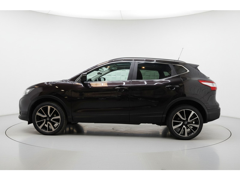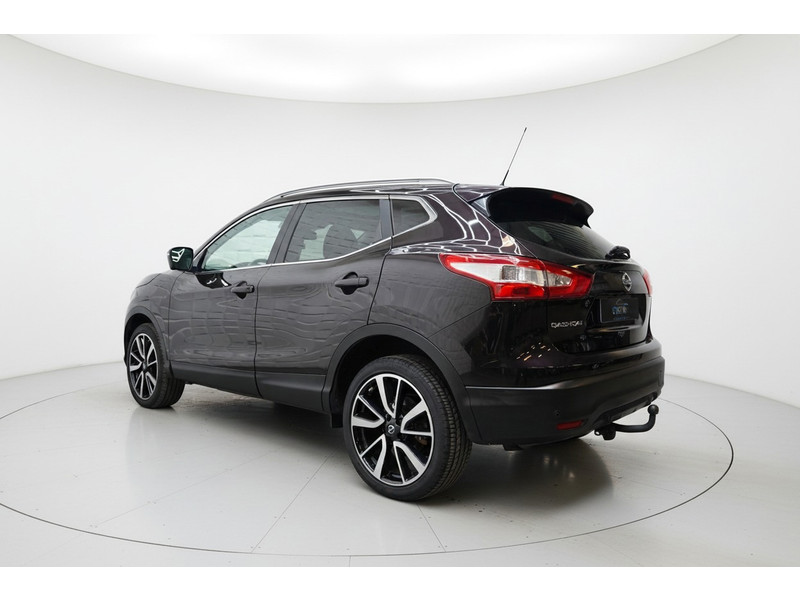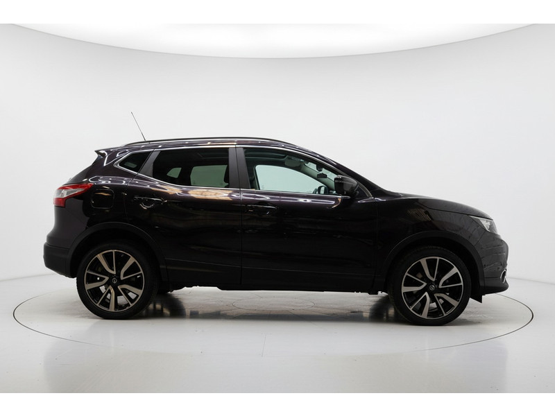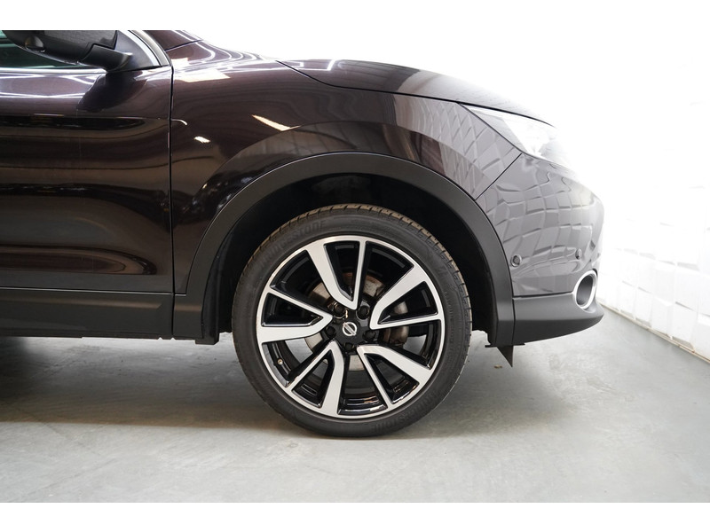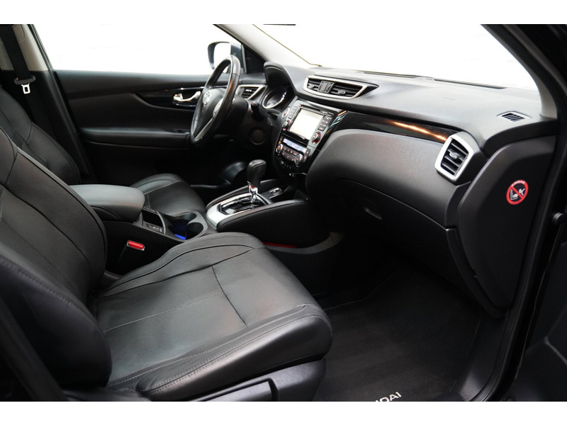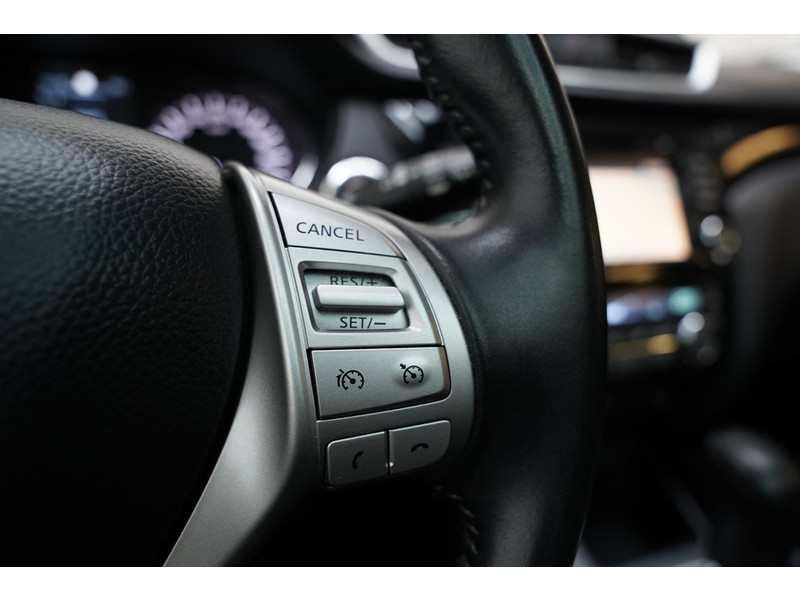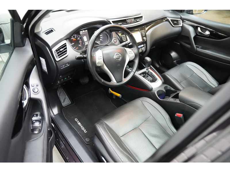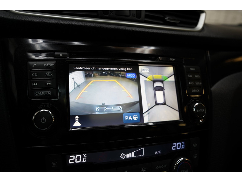 De 360 graden camera wordt mogelijk gemaakt door vier camera's die tezamen werken om zo een uitgebreid zicht te bieden, wat van grote waarde is bij het navigeren door smalle straatjes en parkeerplekken. Een goede veiligheidsvoorziening is de stuurbediening voor belangrijke functies. De auto is natuurlijk voorzien van een origineel navigatiesysteem en het audio-installatiesysteem biedt glasheldere geluidskwaliteit dankzij DAB-ontvangst. Ook is de auto voorzien van automatische airconditioning. Boem is ho? Niet bij deze Nissan Qashqai. De piepjes van de parkeersensoren waarschuwen u op tijd voor obstakels. Het luxeniveau in deze Nissan is niet alleen gericht op comfort, maar ook op uw veiligheid. Tal van sensoren helpen u om de omgeving in de gaten te houden. De automatisch inschakelbare verlichting zorgt dat automatisch de verlichting wordt ingeschakeld als het donker wordt, wat bijvoorbeeld in tunnels erg handig is. En de regensensor zet de ruitenwissers aan zonder dat u eraan hoeft te denken. Natuurlijk behoren cruise control, keyless entry, buitentemperatuurmeter, automatisch dimmende buitenspiegels, lederen stuur en isofix-aansluiting ook tot de uitrusting van deze complete auto.