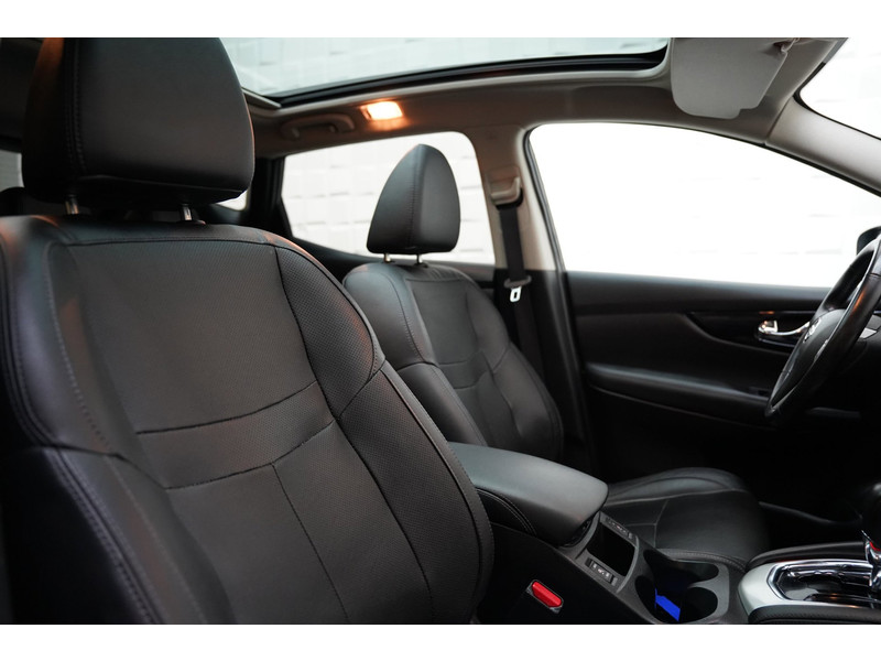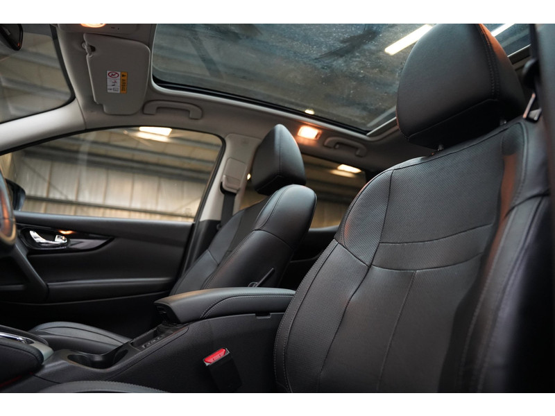 Vooruitstrevend, technisch helemaal voorop en altijd een plezier om te rijden. Dat is Nissan. Innovation that excites. De aandrijving van deze Nissan wordt verzorgd door een viercilinder motor en een automatische transmissie. Op het lijstje aantrekkelijke extraatjes vallen meteen op: het lederen interieur en de elektrisch bedienbare achterklep. Op koude en donkere dagen zijn de verwarmbare voorstoelen een uitkomst. Door het glazen panoramadak heeft u een weidse zichthoek en geniet u van licht en een gevoel van ruimte. Tot de uitrusting behoren ook LED koplampen, extra getint glas, in delen neerklapbare achterbank en verstelbare lendensteunen.