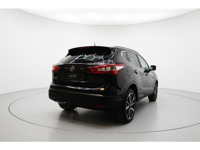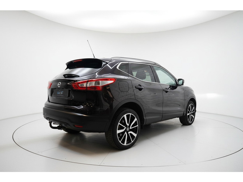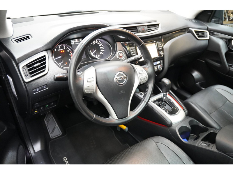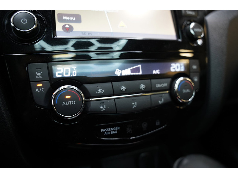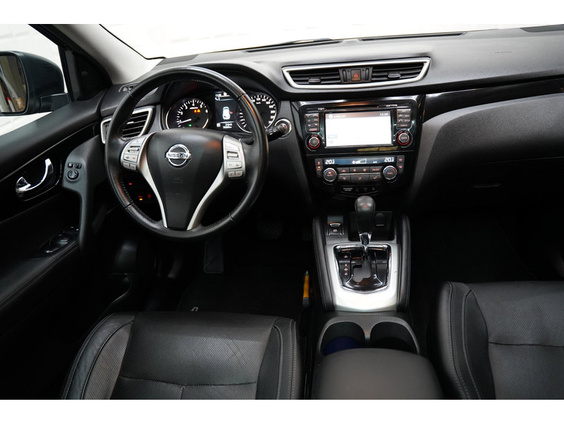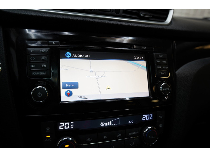 De 360 graden camera wordt mogelijk gemaakt door vier camera's die tezamen werken om zo een uitgebreid zicht te bieden, wat van grote waarde is bij het navigeren door smalle straatjes en parkeerplekken. Een goede veiligheidsvoorziening is de stuurbediening voor belangrijke functies. De auto is natuurlijk voorzien van een origineel navigatiesysteem en het audio-installatiesysteem biedt glasheldere geluidskwaliteit dankzij DAB-ontvangst. Ook is de auto voorzien van automatische airconditioning. Boem is ho? Niet bij deze Nissan Qashqai. De piepjes van de parkeersensoren waarschuwen u op tijd voor obstakels. Het luxeniveau in deze Nissan is niet alleen gericht op comfort, maar ook op uw veiligheid. Tal van sensoren helpen u om de omgeving in de gaten te houden. De automatisch inschakelbare verlichting zorgt dat automatisch de verlichting wordt ingeschakeld als het donker wordt, wat bijvoorbeeld in tunnels erg handig is. En de regensensor zet de ruitenwissers aan zonder dat u eraan hoeft te denken. Natuurlijk behoren cruise control, keyless entry, buitentemperatuurmeter, automatisch dimmende buitenspiegels, lederen stuur en isofix-aansluiting ook tot de uitrusting van deze complete auto.