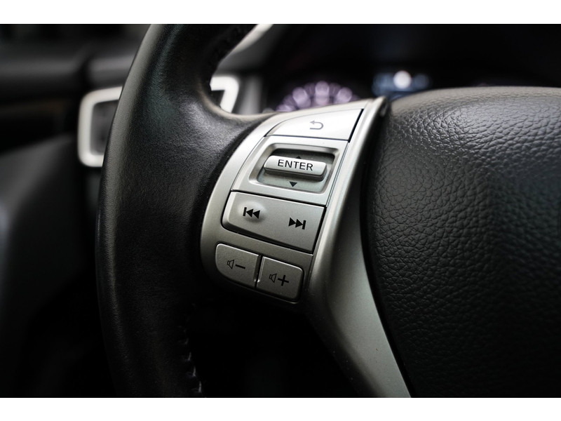 Vooruitstrevend, technisch helemaal voorop en altijd een plezier om te rijden. Dat is Nissan. Innovation that excites. De aandrijving van deze Nissan wordt verzorgd door een viercilinder motor en een automatische transmissie. Op het lijstje aantrekkelijke extraatjes vallen meteen op: het lederen interieur en de elektrisch bedienbare achterklep. Op koude en donkere dagen zijn de verwarmbare voorstoelen een uitkomst. Door het glazen panoramadak heeft u een weidse zichthoek en geniet u van licht en een gevoel van ruimte. Tot de uitrusting behoren ook LED koplampen, extra getint glas, in delen neerklapbare achterbank en verstelbare lendensteunen.